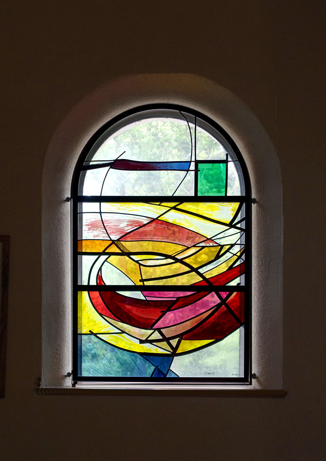 verre antique, gravure à l'acide,grisaille plombs, verrier Roland Béguin.